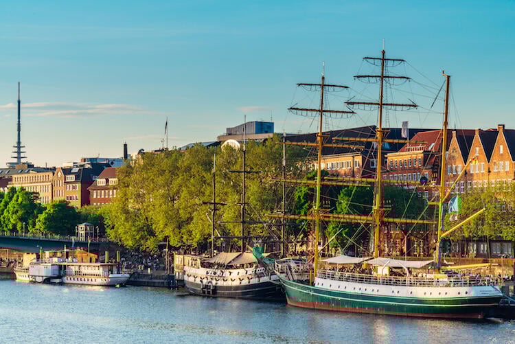 Intill floden Weser ligger Bremen, cirka 12 mil sydväst om Hamburg. Du kan ta dig hit med tåg från Malmö, på cirka 7 timmar med byten i Köpenhamn, Rödby och Hamburg.