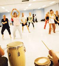 Höstens första pass för nybörjarna i afrikansk dans ska snart börja och vi står lite vilsna och barfota i lysrörsljuset.