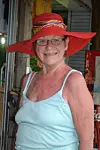 På templet Tanaloo, vid solnedgången, mitt i havets dimma var den där, hatten som Benitas bortgångna man skulle visa sig genom! Vid ett ensamt stånd, långt ifrån resten av marknaden, låg den överst på en stapel av hattar i alla dess färger, den röda hatten med det färgglada bandet.