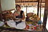 När ceremonin är över ska mat offras till gudarna. Vi får ett vitt band placerat bakom örat, det står för upplysning. Ett band av en röd, vit och svart tråd snurras ihop och fästs runt våra handleder. Nu ska vi önska oss något. När bandet trillar av är tiden inne för att önskningen ska slå in.