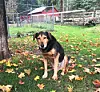Hunden Mel älskar att vara utomhus och sitta under trädet på familjens gård.