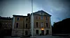 Fredrikshovs slott, som genom åren också varit fängelse, militärkasern och numera är friskola, ligger så här i skymningen ödsligt tyst med sina tomma fönsterrader och den mörka urtavlan stirrandes ut mot kyrkogården och kyrkans vita tornur. En stor svart fågel bryter stillheten och flyger iväg med ett kusligt, klagande skri från slottets tak.
