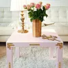 Det mest glamourösa bordet blev det rosa Lackbordet. Med lite olika mässingsbeslag från byggbutiken, och små guldstift, spikade vi fast dessa med en hammare. Dessa beslag är ca 5x5 cm stora respektive 10 cm långa.