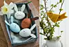 OBS! Om du vill dekorera hårdkokta ägg som sedan ska ätas: tänk på att använda färg och lim som är giftfria och säkra att ha till ätbart. Dessa hittas ofta i speciella hobbyaffärer eller på nätet.