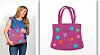 Varv 4: x 2fm, 2fm i nästa fm x. Upprepa x – x. Tag av garnet och sy fast den färdiga cirkeln på väskan med små stygn. Virka 9 cirklar till i andra färger. Sy fast dem på väskan (se bilden).