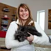 Övriga familjemedlemmar är tonårsbarnen Lovisa och Fabian. Här huserar också nio busiga kaniner, under speciellt beskydd av Lovisa, som tycker att det är roligt med uppfödning. Kramigast när vi hälsar på är svartrufsiga lejonkaninen Hugo, som högst ogärna lämnar Petras trygga famn.