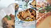 Lägg upp rotsellerin på serveringsfat, häll på svampröran. Toppa med persilja. Servera med couscous.