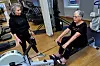 Daniela Giaré, som är hälsocoach och har jobbat på Svensons i fem år, hjälper Inger att få ordning på roddmaskinen.