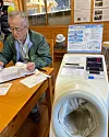 Jag får sticka in armen i en blodtrycksmätare. Den ser helt annorlunda ut än de manschetter vi är vana vid i Sverige. Det är en maskin med ett hål i mitten. Sedan får jag hålla en sticka under tungan i någon minut i syfte att mäta min stress via kortisolnivån i saliven.