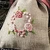 Rosorna syr du med förlängdaknutar tillsammans med franska knutar och enstaka kedjestygn. Det färgskiftande, rosa garnet ger extra liv åt motivet.