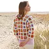Den färgglada mormorsrutan är ett av våra mest älskade virkmönster. Den passar dessutom utmärkt till både filtar och klädesplagg. Denna snygga kofta är hopfogad av små rutor som tillsammans bildar en vacker helhet.