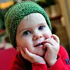 Esaias, som visar mössan på bilden, har fyllt två år. Modellen sitter bra på mindre huvuden också. Om man vill kan man virka snoddar att knyta den under hakan med.