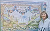 Hon visar ett uppförstorat fotografi av verket, efter 26 år lite blekt men fortfarande vackert. Här har hon målat Skifs i olika åldrar och valt ut signifikanta skeenden i hans liv.