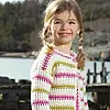 En Pippi-mönstrad kofta passar både till lek och fest. Den stickas i ett sinnrikt mönster med lyfta maskor. Finns även som mössa och tröja. Garnet kan du köpa här.