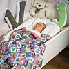 Virka babyfilt och lampskärm med populära mormorsrutor