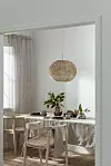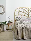 Textilier i dova pasteller gör sovrummet ombonat, medan sänggaveln i rotting fullbordar intrycket av rustik skönhet. Allt från Bloomingville.