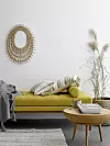 Dagbädden är en smart möbel som kan användas som både soffa och säng. I snyggt senapsgult, som här från Bloomingville, blir den också ett utropstecken mot avskalat vita väggar.​​