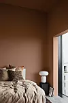 Inred sovrummet med höstens färgskala nummer ett – brända och vackert jordiga toner. Testa att mixa olika nyanser med varandra och kontrastera med vita lampor eller andra ljusa inredningsdetaljer.