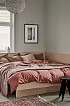 Skapa en drömmig känsla i sovrummet med rosa toner. Låt textilierna ta för sig genom att satsa på täcken, filtar och överkast i lager på lager.