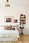 En vacker mix av vackra detaljer och second hand-fyndade favoriter gör att sovrummet känns både unikt och personligt.