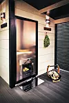 – Med en glasad vägg mot trädgården eller kanske sjön får man en helt annan känsla av rymd än i den traditionella, stängda bastun, säger Daniela Hansson på Exacta.