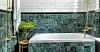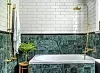 En känsla från svunna tider ger den gröna Guatemalamarmorn – en stil som håller i längden. Just nu är grönt dessutom en av de stora trendfärgerna. Kakel "Verde Guatemala", ur Coloramas naturstens­sortiment.