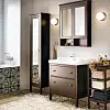 Sätt stilen med kakel och klinker. Använd en en­färgad bas, gärna i någon lite dovare mörk ton, och dekorera med mönstrad klinker och kakel. Här ses bad­­rummet "Hemnes" från Ikea som innefattar tvättställ, olika skåp och hyllor.