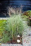 Prydnadsgräs som glansmiskantus är fina som avdelare i rabatter. De passar också att plantera i stora, frostsäkra krukor. Rabatterna är avgränsade med kantjärn från sjöstenen.
