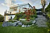 Villan är från 1974 och byggdes ut för 14 år sedan. Koreansk pipranka, bambu, rodgersia och höstsilverax trivs vid fasaden.