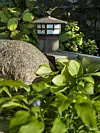 I hela trädgården finns 65 lampor utplacerade. Just den här lampan är inköpt i USA och påminner om ett litet japanskt tehus.