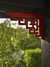 Detaljer i brunsvart och kinesiskt lackrött ger rätt känsla åt paviljongen.