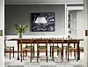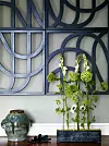På en vägg i matsalen hänger Evas spaljé ”Trellis no 9” och på bordet står en rektangulär variant av hennes vas ”Äng” i ärgad mässing.