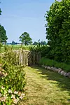 Huset har ett lantligt lugn med fri sikt över omgivningarna.
