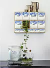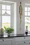 Jennie skapar blickfång med enkla medel. Tistlar och murgröna från trädgården ringlar ner från den vackra specerihyllan över en köksbänk.