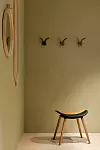 Thomas Sandell har designat en pall av överblivet ekträ från Laminotillverkningen, med en sits klädd i läder som även det blivit över i fabrikerna.