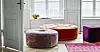 Effektfullt i två färger. Puffen ”Colette” i rött och rosa känns underbart glamourös, diam 51 cm, h 49 cm, 4 000 kr, Meli Meli.