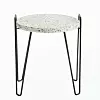 Lättplacerat sidobord i terrazzo och stål, med handtag som gör det lätt att flytta. ”Freya”, diam 41 cm, h 50 cm, 2 499 kr, Muubs.