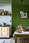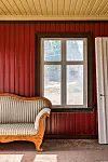 3. Gamla hus var ofta mer färgglada interiört än man kan tro i dag, till exempel kunde snickerierna vara såväl gråblå som rödbruna. I hus från tidigt 1800-tal var det ofta populärt med så kallade pompejanska färger – ockragult, oxidgrönt, obränd terra och gråblått är några exempel. Linoljefärg var vanligt på träytor, limfärg användes ofta till väggar och tak och äggoljetempera förekom på finare snickerier.