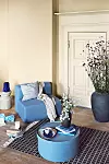 Du kanske minns förra årets trend med blåmålade väggar? Trenden håller i sig även i år. Men den här säsongen syns även den blå färgskalan som accentfärg – på till exempel en fåtölj, vas eller sittpuff.