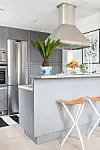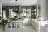 3. Att låta köksön vara lite högre mot den delen av rummet där matbordet står gör att gästerna inte ser eventuellt stök på sidan som vetter mot köket. Det går att få till en smalare bordsskiva på toppen och med rätt höjd på barstolarna fungerar det också bra att sitta där.