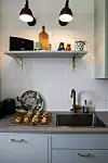 5. Sätt ett par snygga vägglampor ovanför köksbänken istället för en lysramp. Det ger ett mer designat intryck och de är också praktiska då de kan riktas mot olika håll.