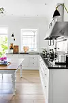 8. Istället för köksö kan du använda ett fint bord som du placerar mitt i köket utan att ställa stolar runt om. Vill du skapa den lantliga stilen väljer du ett antikt eller ett nyproducerat i trä med svarvade ben.