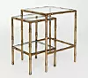 Med glasskivor och metallben som formats som bambu, 1 999 kr för paret, 40x40x58 och 31x31x48 cm. Finns att köpa här, reklamlänk via Apprl.