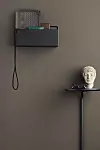 En låda – fast på väggen. Den här förvaringshyllan från Ferm Living passar lika bra för pennor och annat kontorsmaterial som för mobiltelefonen.