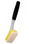 Scrub daddy har en ganska grov yta på sin svamp och passar bäst för tåliga material. Den är ganska klumpig och kommer inte åt där det är smalt och trångt. Vi tyckte också att den var lite för tung. Ett plus är dock att det breda skaftet gör att den kan ställas upp.
