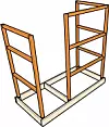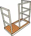 3. Montera reglarna/ stolparna. Stol- pen i mitten ska fällas in till hälften i tvärregeln. Skruva dit de horisontella reglarna mellan stolparna.