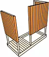 5. Geringssåga brädorna till ramen runt stenöppningen, gör hål för stolparna och skruva dit rambrädorna.
