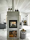 Murspisen ”Tokyo” från norska Nordpeis har sikt från två håll och delar av vardagsrum från kök. Korg från Mio.