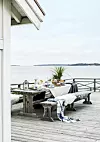 Snyggt, enkelt, men med en spektakulär utsikt som största utropstecken! I den arkitektritade tvåfamiljsvillan råder lugn och harmoni. Brasan sprakar i den öppna spisen och från köket kommer en doft av nybryggt kaffe.