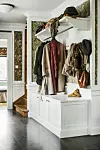 Stort fokus ligger även på förvaring. Exempelvis finns det i källaren en lång korridor med bara garderober och ett helt rum enbart för förvaring.